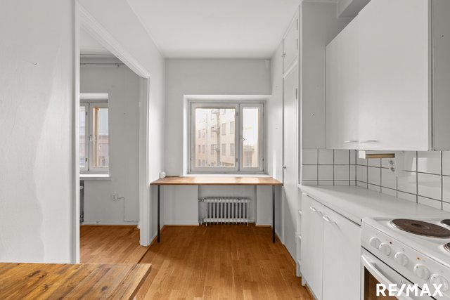 Tämä Pengerkadun toisen asuinkerroksen koti houkuttelee jo pelkästään sen sijainnin puolestaan. Lisäksi asunnon valoisan ja muunneltavan pohjaratkaisunsa ansiosta tämä koti soveltuu erinomaisesti niin ensiasunnon ostajille sekä sijoittajille, kuin kaupunkiasunnoksikin. Asunnosta on länteen Pengerkadulle avautuva näkymä. Asunnon olohuoneessa on makuukäyttöön suunniteltu alkovi ja tilava keittiö. Eteisen sekä makuualkovin kiinteiden kaappien lisäksi huoneistolle kuuluu tilava verkkovarasto. Kylpyhuone tullaan remontoimaan kokonaisuudessaan juuri yhtiössä käynnistyvän putkiremontin yhteydessä. Putkiremontin odotetaan valmistuvan vuoden 2026 aikana kokonaisuudessaan ja tämän huoneiston osalta ennakoitu kustannusarvio on noin 53000euroa, joka tullaan jyvittämään urakan päätyttyä.