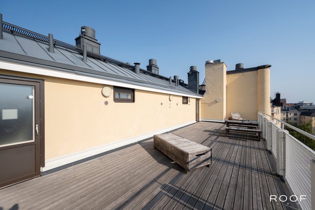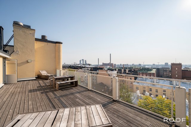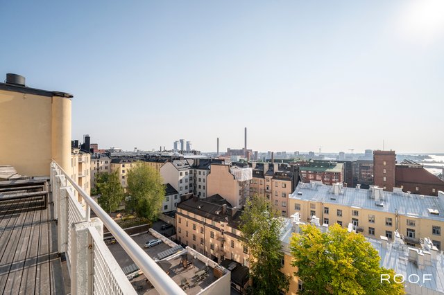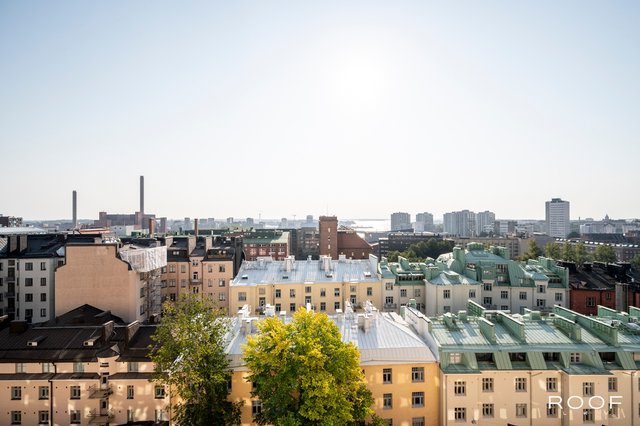 Lisäarvoa tuo taloyhtiön yläkerrassa sijaitseva sauna ja kattoterassi, josta avautuvat upeat näkymät kaupungin ylle ja merelle. Säilytystilaakaan ei puutu, sillä käytössäsi on sekä vintti- että kellarikomero.