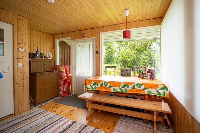 - Verannan lattiassa lauta, seinät ja katto paneloitu. Aulan lattiassa lauta, seinissä ja katossa sisustus levy.