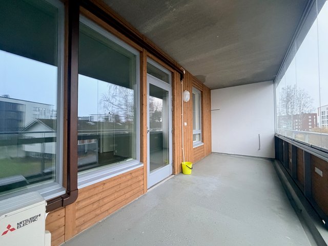 Kodin sydän on tilava olohuone, josta on käynti lasitetulle parvekkeelle – täydellinen paikka nauttia aamukahvista tai rentoutua päivän päätteeksi. Parvekkeen lasitus pidentää käyttöaikaa keväästä syksyyn. Keittiössä on kaikki tarpeellinen, hyvin lasku- ja kaappitilaa ja se on yhdistetty olohuoneeseen, mikä luo avaran ja yhtenäisen tilan.