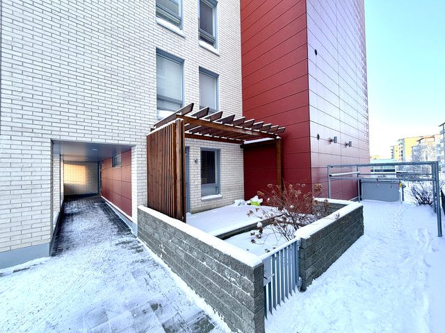 Tämä maantasakerroksen huoneisto tarjoaa viihtyisän ja modernin asumiskokemuksen. Huoneiston lattiat ovat kaunista parkettia ja seinäpinnat on maalattu. Kylpyhuone on tyylikkäästi kaakeloitu ja varustettu käytännöllisillä ominaisuuksilla, kuten lattialämmityksellä ja suihkuseinällä. Eteiseen on sijoitettu kaapistot liukuovikomeroilla, mikä mahdollistaa tehokkaan tilankäytön. Keittiössä on modernit kodinkoneet, kuten liesitaso, yhdistelmäuuni (sisältäen mikroaaltouunin ja perinteisen uunin), astianpesukone sekä jääkaappi pakastelokerolla.