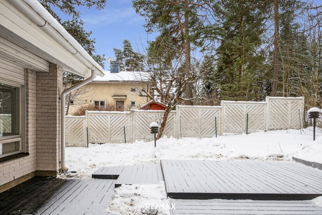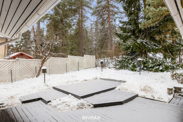 Kodin ehdoton helmi on upea ja tilava piha, joka avautuu kolmeen ilmansuuntaan – lounaaseen, etelään ja luoteeseen. Päätyasunnon sijainti tuo pihaan yksityisyyttä, ja aivan tontin vierestä alkava puistoalue jatkuu luonnonmukaisena näkymänä. Piha tarjoaa upeat puitteet oleskeluun, lasten leikkeihin ja puutarhaharrastuksiin.