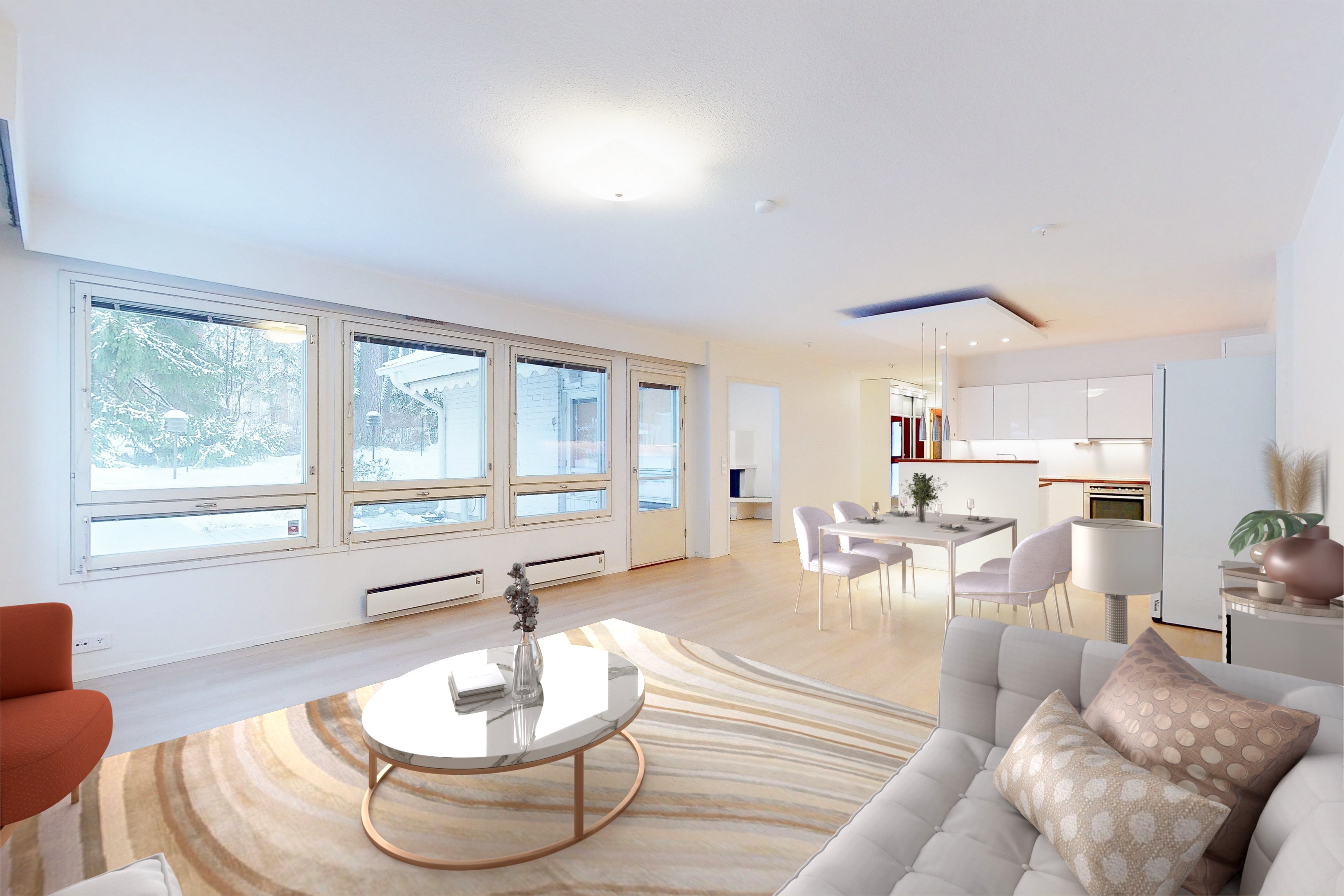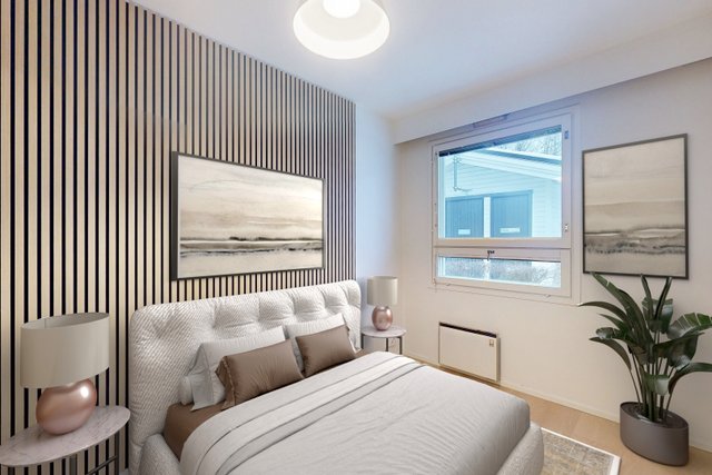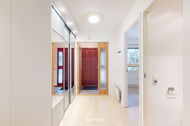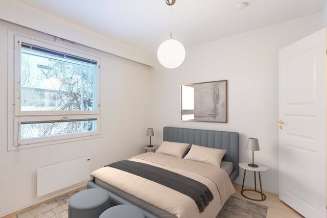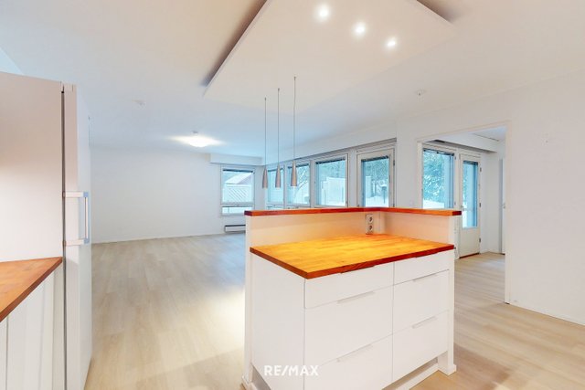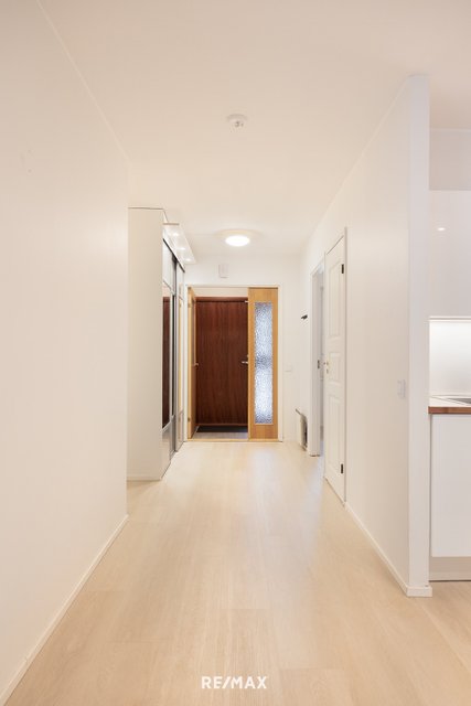 Asunnossa on kolme reilun kokoista makuuhuonetta sekä erillinen takkahuone. Vaalea avokeittiö tarjoaa runsaasti kaappi- ja laskutilaa sekä erillisen saarekkeen. Keittiö yhdistyy luontevasti todella tilavaan ja valoisaan olohuoneeseen. Suuret ikkunapinnat tuovat luonnonvalon kauniisti sisään ja tekevät kodista poikkeuksellisen valoisan ja avaran. Vuonna 2025 asuntoon on tehty pintojen päivitys: lattiat on uusittu, väliovet vaihdettu ja seinät maalattu kauttaaltaan, mikä tuo tiloihin raikkaan ja modernin ilmeen.