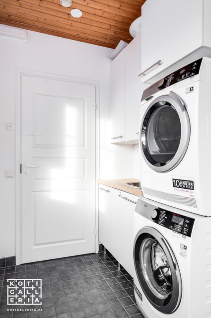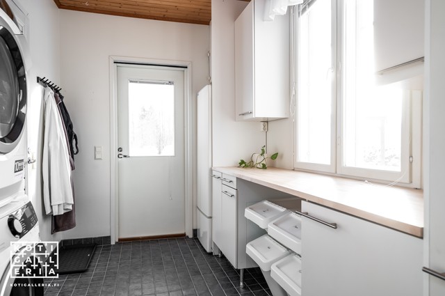 - Pesuallas, pesukoneliitäntä, tila pesutornille, ja lattialämmitys (Sähkökaapeleilla)
