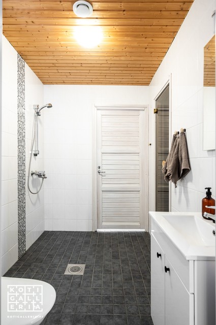 Kodin sauna ja kylpyhuone tarjoavat rentouttavat puitteet arjen kiireiden keskellä. Lisäksi kodinhoitohuoneessa on oma uloskäynti, mikä helpottaa arjen askareita.