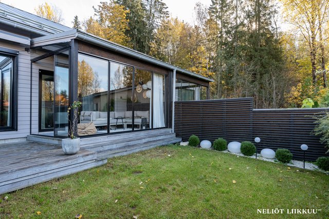 Tämä koti yhdistää laadukkaan arkkitehtuurin, nykyaikaisen tekniikan ja luonnonläheisen sijainnin tavalla, joka tekee arjesta aidosti viihtyisää.