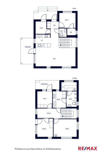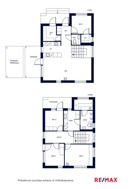 - Alakerrassa erillinen wc ja toinen wc kylpyhuoneen yhteydessä yläkerrassa.