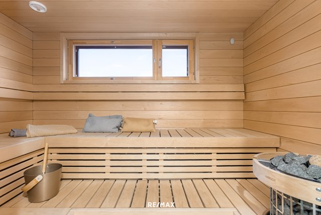 - Saunassa on ikkuna ja Saas-kuituvalosarja.