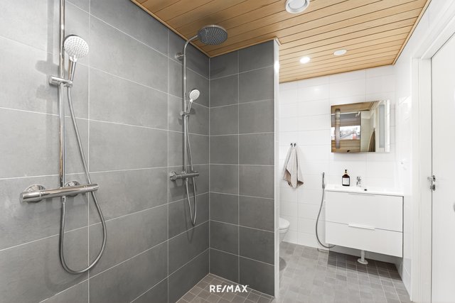 - WC-istuin, suihku (2 kpl), suihkuseinä, lattialämmitys, peili, allaskaappi, ja bidee-suihku