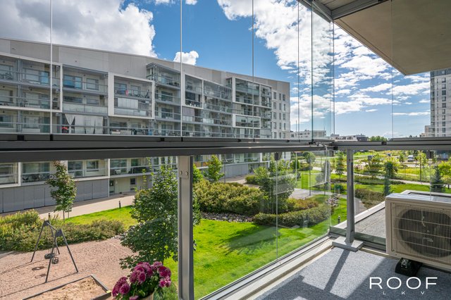 - Olohuoneesta, keittiöstä ja isommasta makuuhuoneesta itään avaralle puistopihalle sekä pienemmästä makuuhuoneesta pohjoiseen.