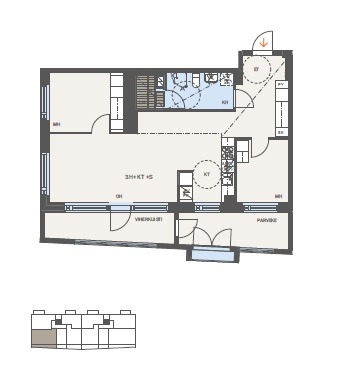 Asunnossa oma sauna, helposti sisustettava asuntopohja ja koko asunnon kruunaa suuri, asunnon levyinen parveke. Päätyhuoneisto.