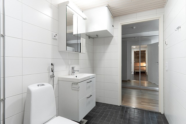 - Pesukoneliitäntä, suihkuseinä, peilikaappi, suihku, ja wc-istuin