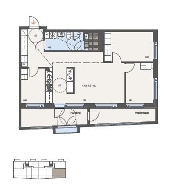 - Pesutupa, väestönsuoja, urheiluvälinevarasto, ja lastenvaunuvarasto, huoneistokohtaiset varastot