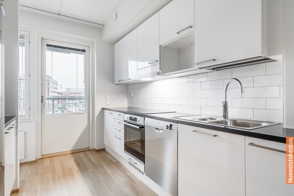 4 h, avokeittiö, pesutilat, sauna, iso lasitettu parveke ( yht.järj. 4 h + kt + s ).