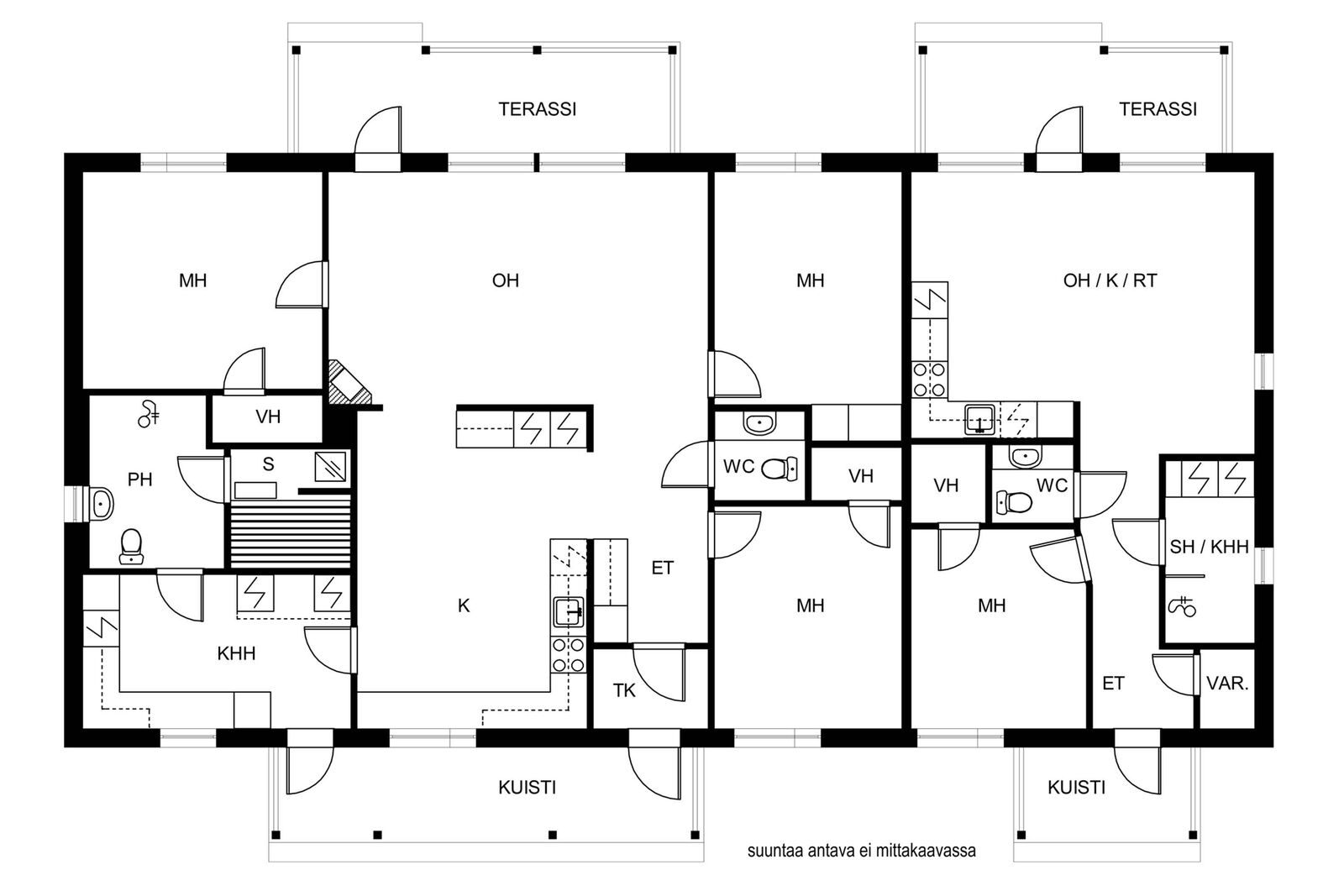 - Erillisuuni, jääkaappi, erillinen pakastin, liesi, astianpesukone, ja liesituuletin / hormi, kiinteät valaisimet