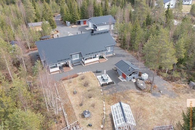 Kohde myydään kokonaisena kiinteistönä, mutta talo koostuu kahdesta asunnosta. Isolla puolella 120,6m² jossa kolme makuuhuonetta, olohuone, keittiö, wc, kodinhoitohuone, pesuhuone ja sauna. Päädyssä 51m² kaksio omalla sisäänkäynnillä, jossa olohuone, keittiö, makuuhuone, wc sekä oma kylpyhuone. Halutessaan kaksion keittiöstä voi tehdä sisäoven asuntojen välille.