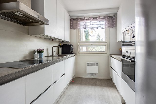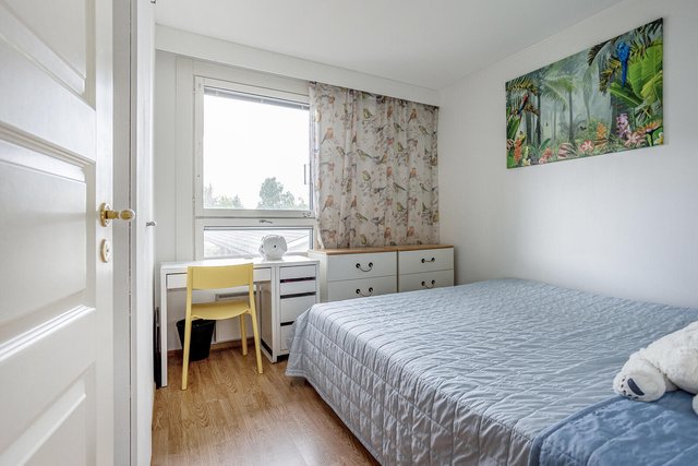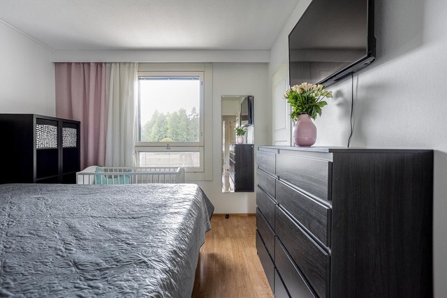 Tässä asunnossa lapsiperheelle tuo helppoutta läheltä löytyvät koulu, päiväkoti ja kauppa.