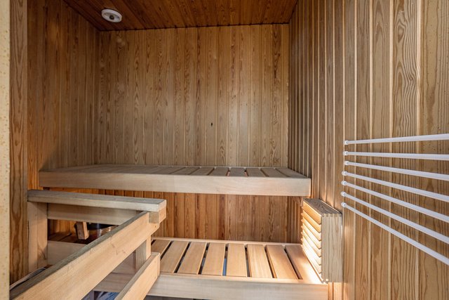 Yläkerrasta löytyvät makuuhuoneet, kph, sauna ja kodinhoitohuone, josta käynti parvekkeelle vilvoittelemaan.
