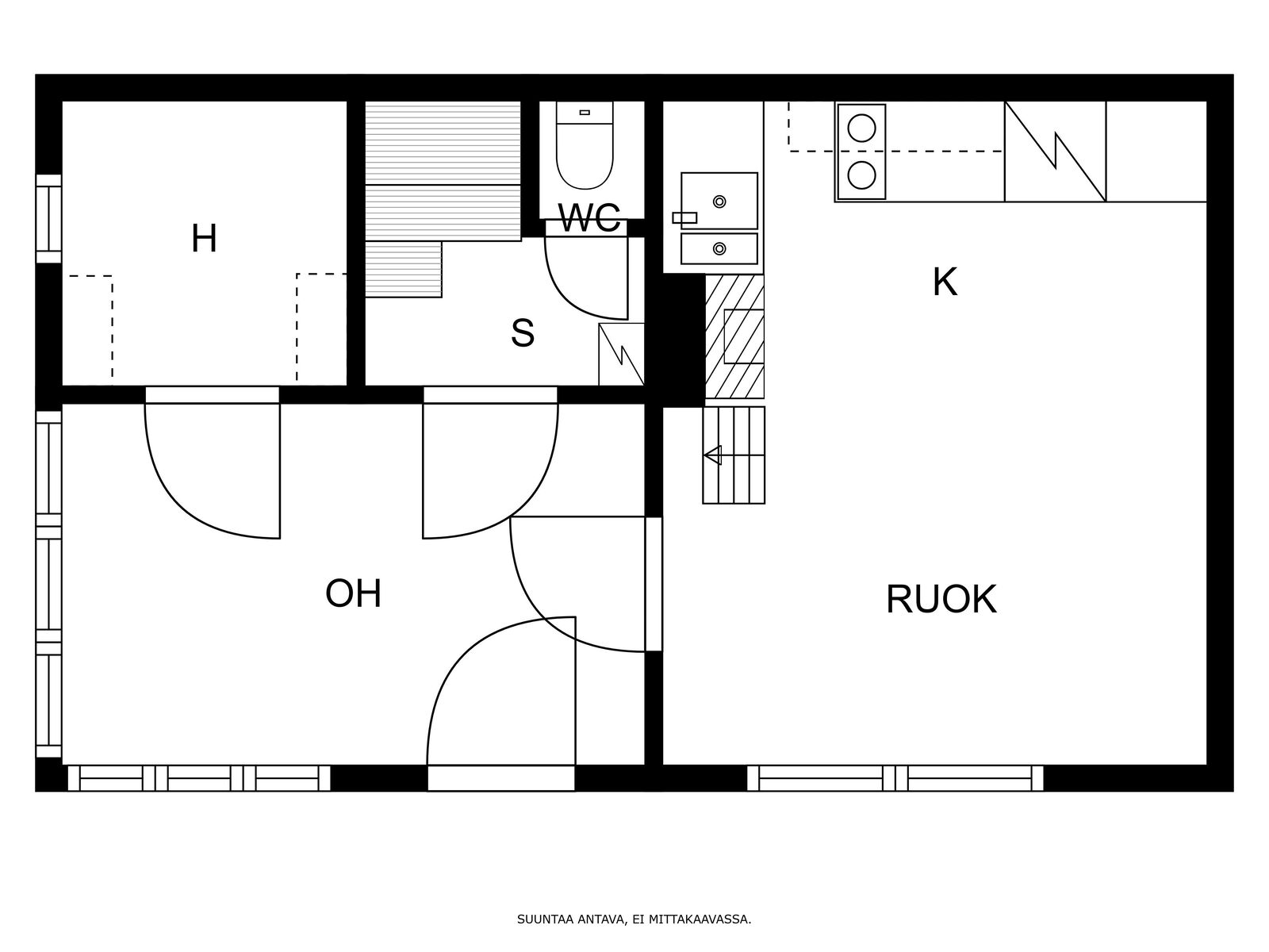 - Rakennuksen pinta-ala tiedot on saatu rakennuslupapiirustuksista, niitä ei ole tarkistusmitattu, joten ne saattavat poiketa oleellisestikin todellisista pinta-aloista. Asuinpinta-ala voi siten olla esitteessä ilmoitettua suurempi tai pienempi.