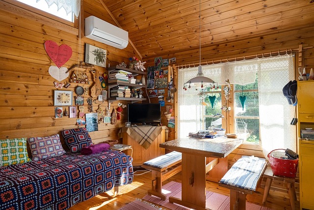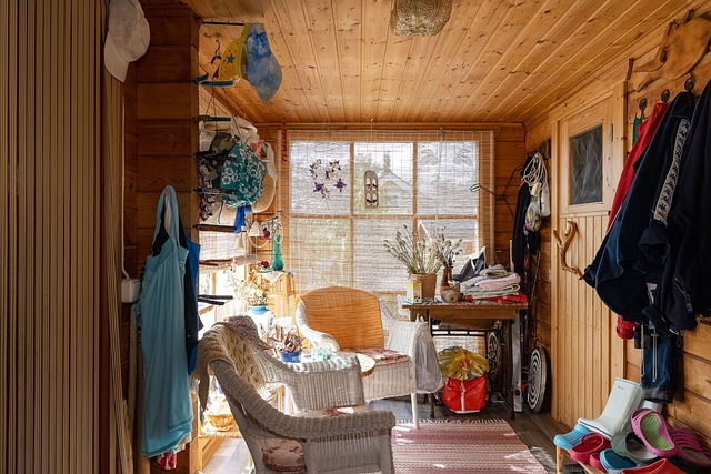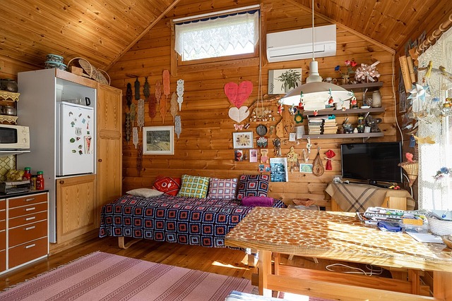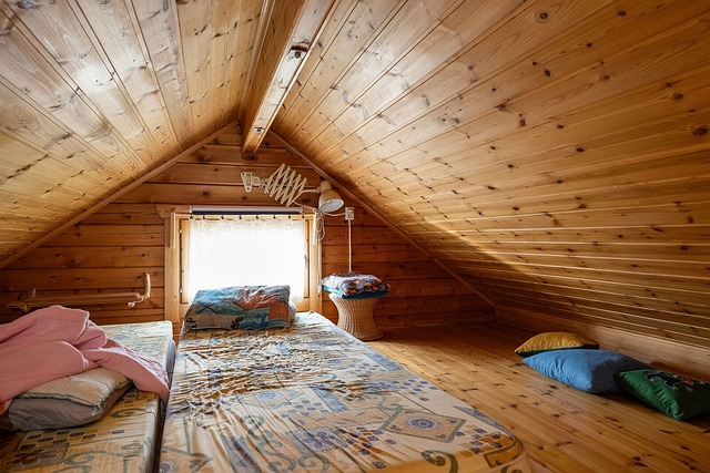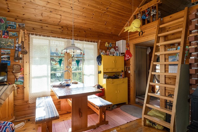 - Lautalattia. Seinät hirttä ja katto puupaneelia.