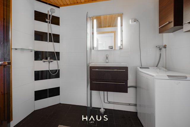 - Suihku, suihkuseinä, lattialämmitys, peili, pesuallas, ja pesukoneliitäntä
