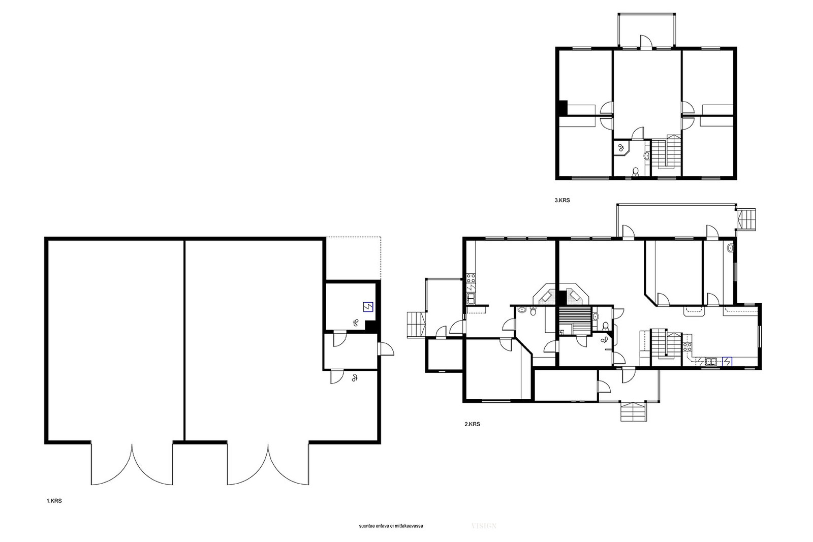 Isommassa asunnossa 5 makuuhuonetta ja pienemmässä tupakeittiön lisäksi 1 mh.