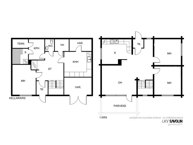 - Muihin tiloihin merkattuna: alakerran mh + khh + varastotilat Talon ulkomitat 10,3 m x 7,3 m Yläkerta: Keittiö,oh,2xmh,p Alakerta: mh,s,ph,khh,vh,wc,kellari,aula