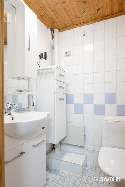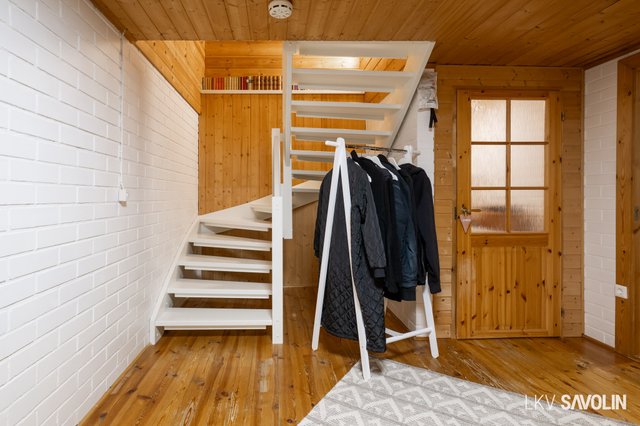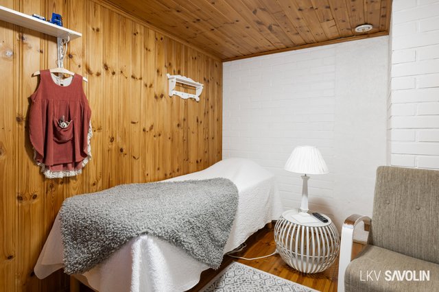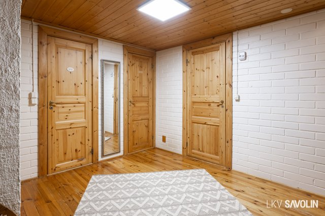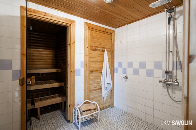 Alakerrasta löytyy kolmas makuuhuone sekä saunaosasto, jossa voit rentoutua puukiukaan pehmeissä löylyissä. Lisäksi käytännölliset kodinhoito- ja varastotilat tuovat arkeen helppoutta ja säilytystilaa.