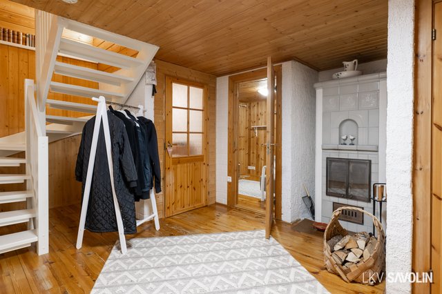 Lämmityksestä huolehtii varaava takka, sähkölämmitys, jota tukee ilmalämpöpumppu. Energialuokka on D2018.