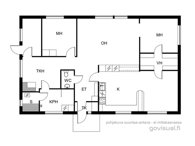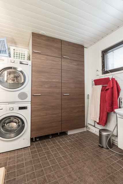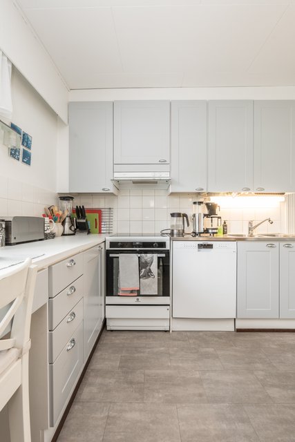 - Erillinen pakastin (uusittu 2022), jääkaappi (uusittu 2022), liesi (uusittu 2023), liesituuletin, ja astianpesukone