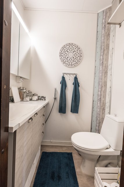 - Pesuallas, suihkuseinä, bidee-suihku, suihku, pesukoneliitäntä, ja lattialämmitys