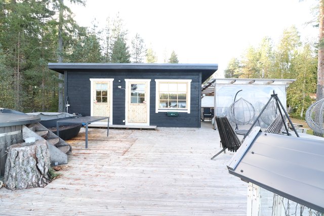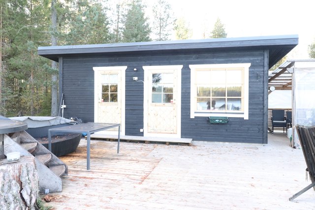 - Liiteri ja saunarakennus, jossa tilava sauna/peseytymistila 1 huone varasto vierasmaja puucee