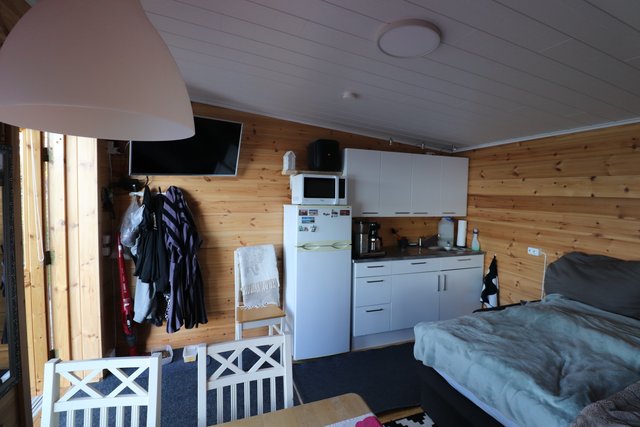 Mökin lämmitys hoituu sähköpattereilla ja poistoilmalämpöpumpulla. Puuliesi/uuni toimi myös tehokkaana lämmöntuojana. Lisäksi keittiö on varustettu runsaalla kaappitilalla ja kaikilla tarpeellisilla laitteilla, kuten liedellä, kalusteisiin upotetulla mikroaaltouunilla, jääkaappipakastimella ja astianpesukoneella.