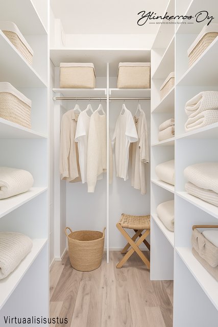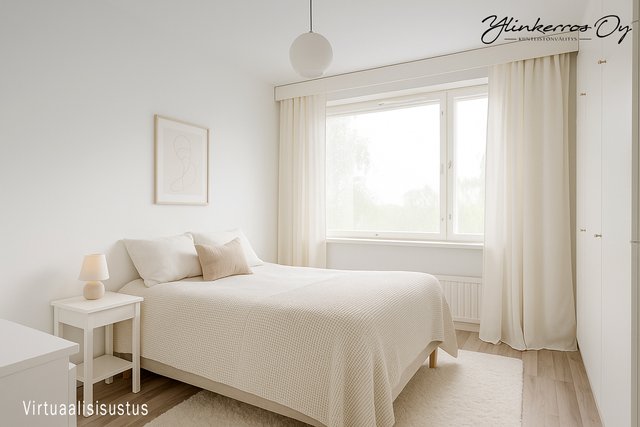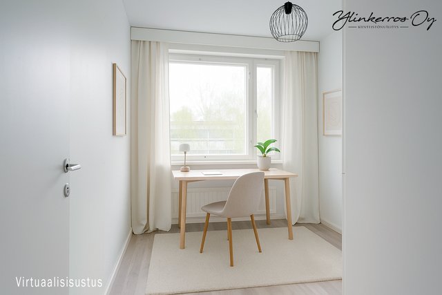- Huoneistoon kuuluu kaksi mukavan kokoista makuuhuonetta. Molemmissa huoneissa on suuret ikkunat sekä pohjapiirroksen mukaiset kaapistot. Tilaa on myös pienelle työpisteelle.