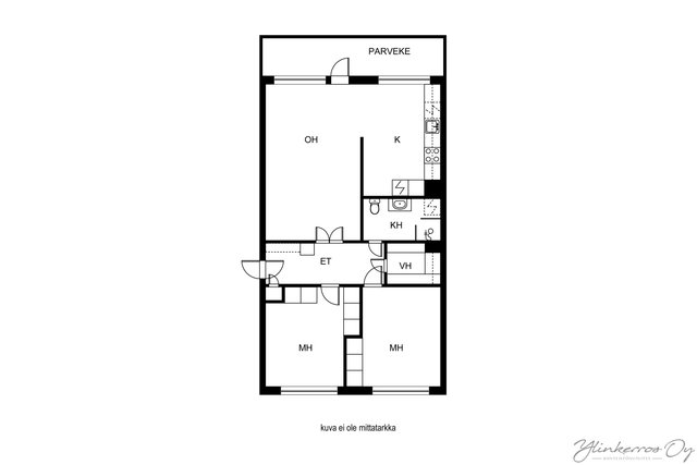 - Ei tarkistusmitattu. Pinta-alat saattavat tämän ikäisissä kohteissa (yhtiö rekisteröity ennen 01.01.1992) poiketa olennaisestikin asuinrakennusten nykyisten mittaustapojen ja standardien (SFS 5139) mukaan laskettavasta asuintilojen pinta-alasta. Pinta-ala voi siis olla edellä mainittua pienempi tai suurempi.