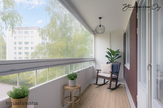 Kaksi hyvänkokoista makuuhuonetta, suuri vaatehuone, tilava eteinen sekä tämän kodin sydän; todella tilavat ja upean valoisat oleskelutilat. Oleskelutilat koostuvat suuresta keittiöstä, jossa tilaa on suuremmallekin perheelle tai illallisseurueelle sekä mahtavan kokoisesta olohuoneesta, josta tilaa löytyy monenlaiseen toimintaan. Tämä tila on todella suunniteltu perheen yhteisiin hetkiin. Oleskelualueelta on käynti suurelle, koko huoneiston levyiselle lasitetulle parvekkeelle.