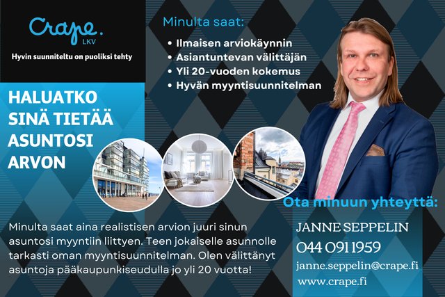 Mikäli haluat arvioni omasta kodistasi, niin ota reippaasti minuun yhteyttä.