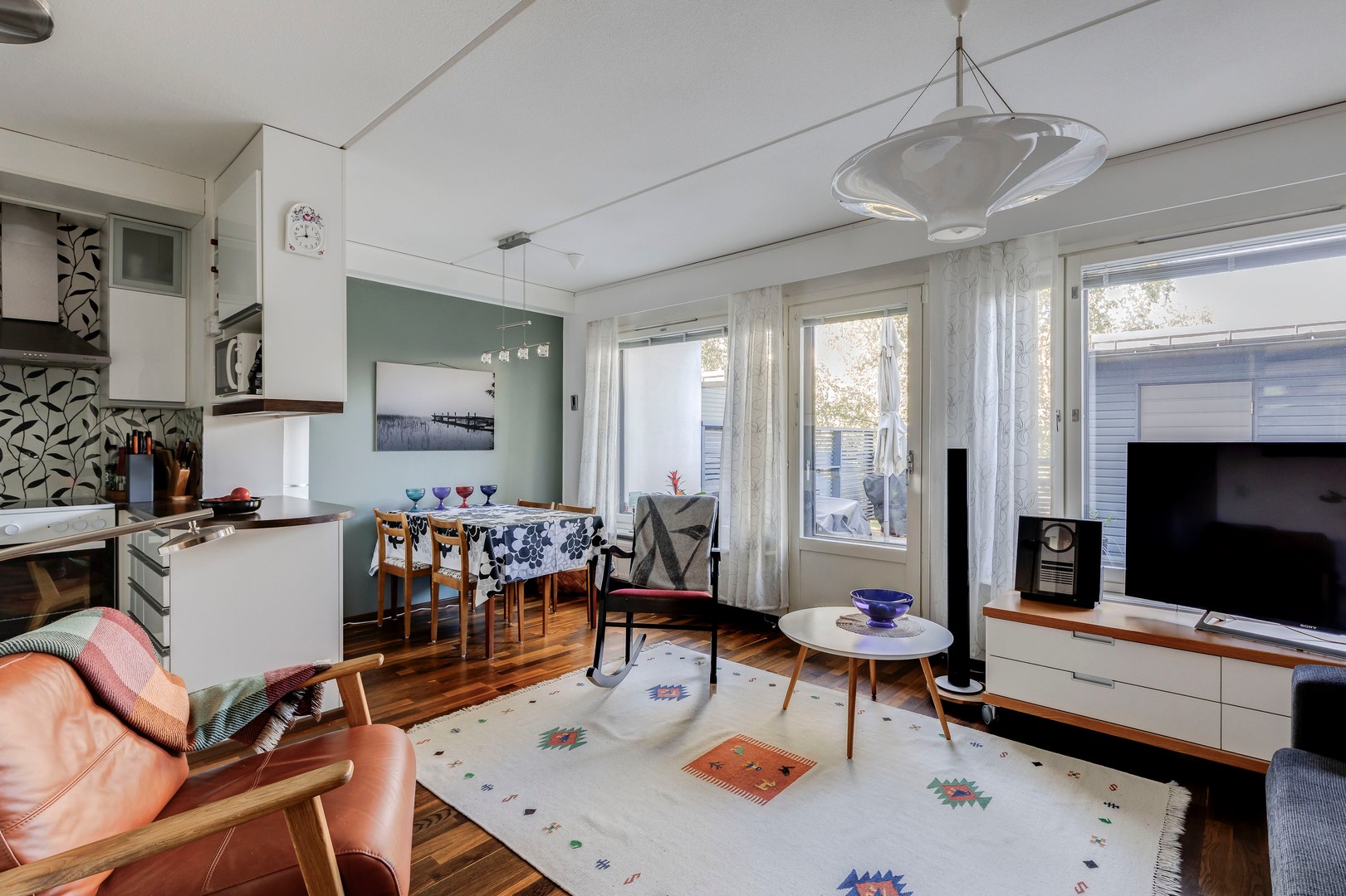 Vuonna 2004 valmistunut koti on pidetty hyvässä kunnossa ja se sijaitsee rauhallisella alueella, josta on sujuvat kulkuyhteydet niin bussilla kuin omalla autollakin. Kävelymatkan päässä löytyvät niin koulut kuin päiväkoditkin, mikä tekee tästä kodista ihanteellisen valinnan perheille. Lisäksi S-Market ja laajemmat palvelut Kauppakeskus Columbuksessa ovat vain lyhyen matkan päässä, tuoden arjen tarpeet lähellesi.