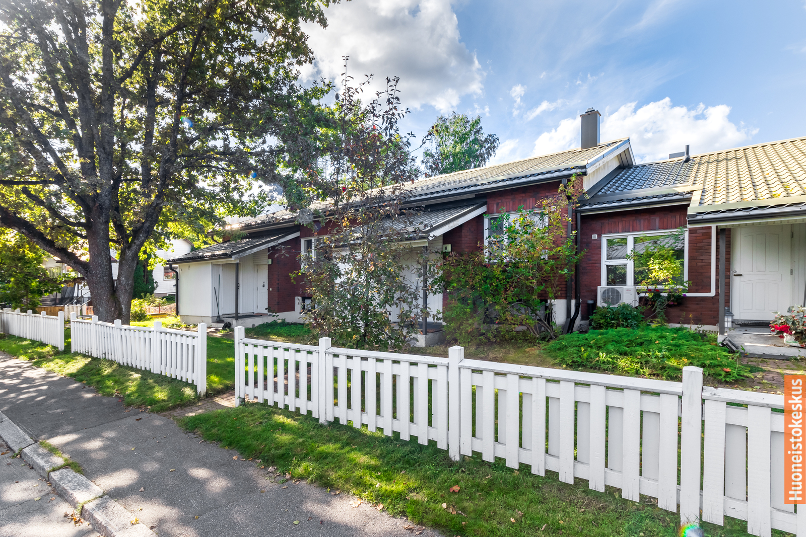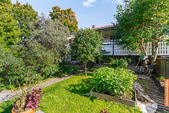 - vehreä piha ja pientaloalue, parveke ja piha noin länteen