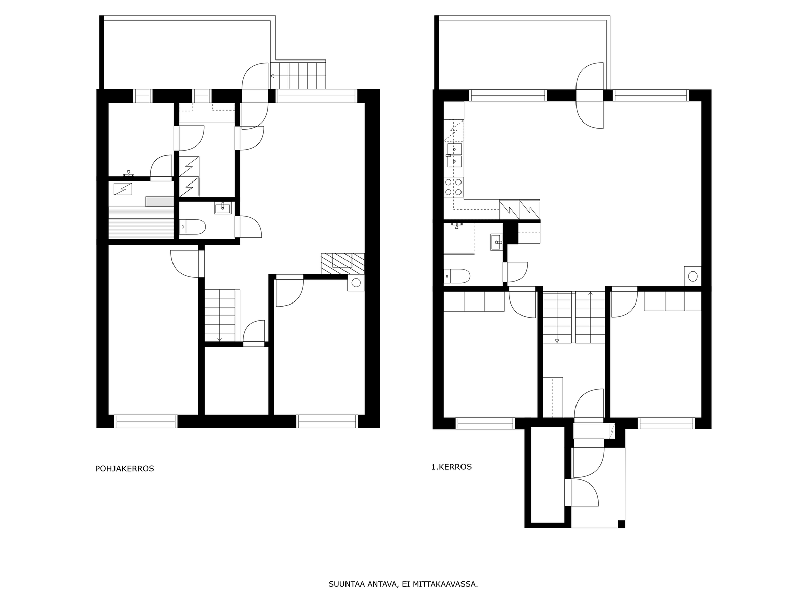 Alakerrassa on viihtyisä takkahuone sekä kaksi huonetta, jotka voit sisustaa omien tarpeidesi mukaan, vaikkapa kuntoilutilaksi, työhuoneeksi tai ylimääräiseksi makuuhuoneeksi. Alakerrasta kulku viherpihalle.
