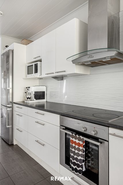 Asunnon toimiva pohjaratkaisu tarjoaa hyvin tilaa niin arkeen kuin yhdessäoloon. Kodissa on kolme makuuhuonetta, jotka soveltuvat erinomaisesti perheasumiseen tai etätyökäyttöön. Olohuone ja keittiö muodostavat avaran, mutta sopivasti erillisen kokonaisuuden – keittiö on osittain oma tilansa, mutta silti yhteydessä olohuoneeseen, jolloin tila tuntuu yhtenäiseltä ja avaralta.