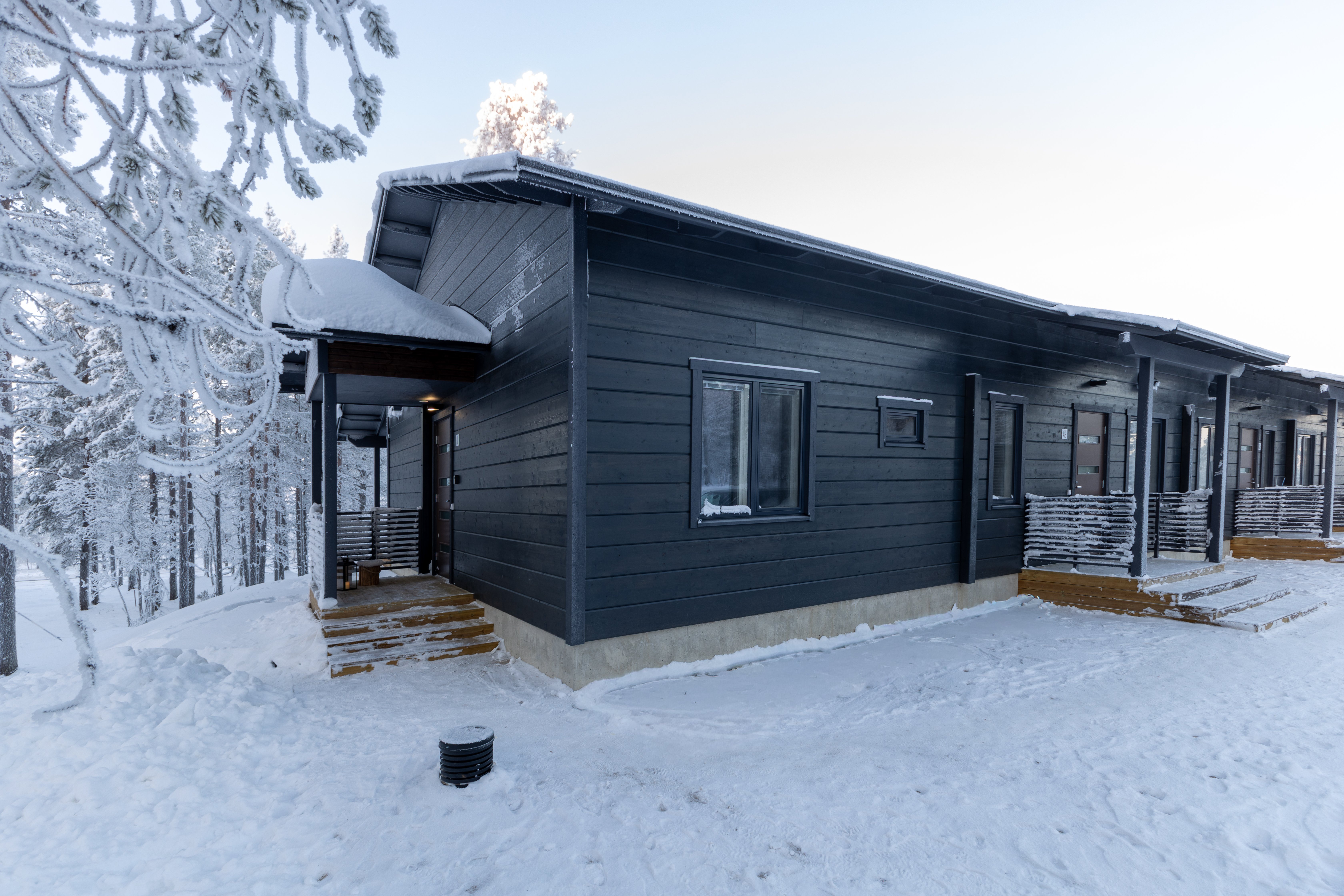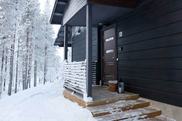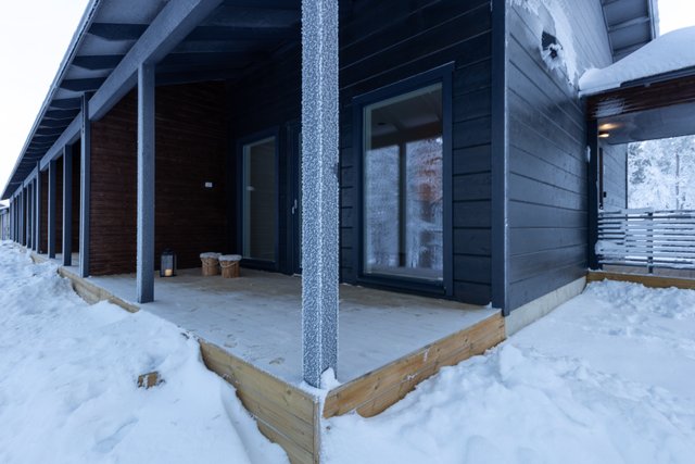 Lisäksi asunnossa on katettu terassi, joka tarjoaa mahdollisuuden nauttia Lapin ainutlaatuisesta luonnosta ja rauhasta. Terassiin on mahdollista laittaa lasitukset halutessasi.