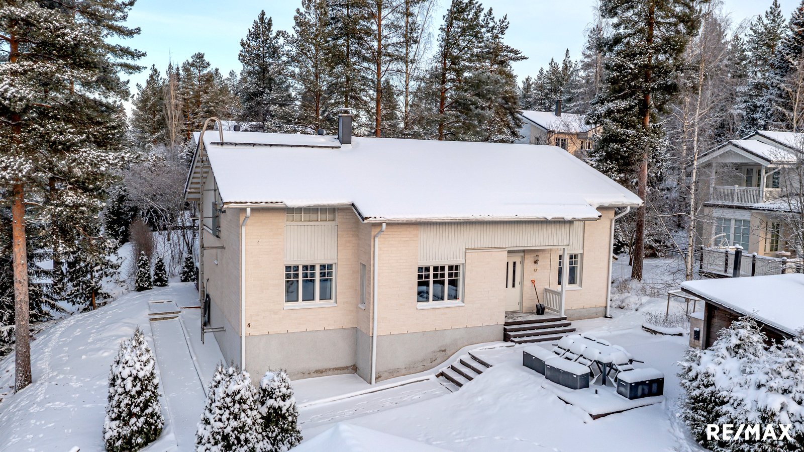 - Palju, pihan kunnossapitovälineet, pihakalusteet, pihagrillit (2kpl, joista toinen kiinteä), siirrettävät ulkokasvit, olohuoneen sohva, saarekkeen tuolit sekä kuntosali varusteineen. Polttopuut kuuluvat kauppaan