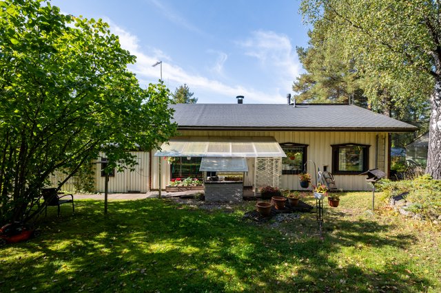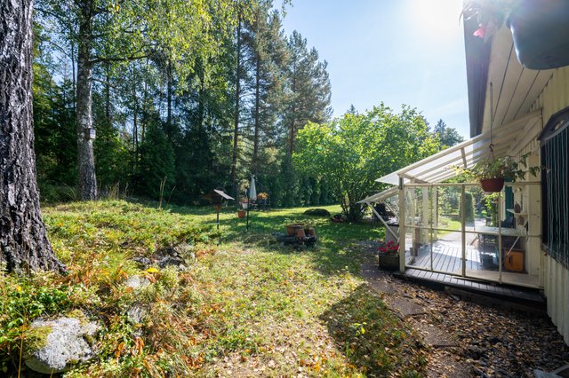 - Omakotitalo, viherhuone saunalla, varasto, autokatos