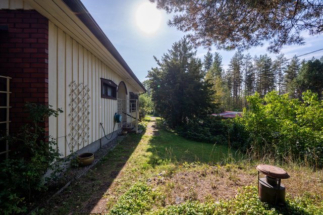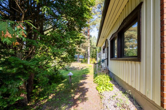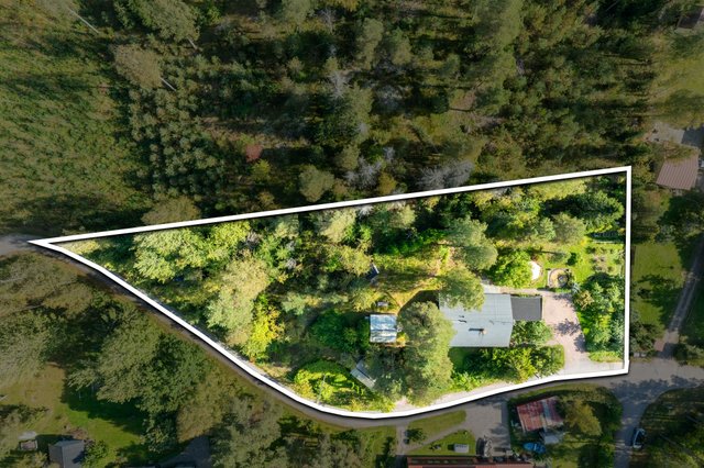 Talo sijaitsee omalla 3800 m²:n tontilla, joka tarjoaa runsaasti tilaa niin saunailtaan kuin viihtymiseen ja puutarhanhoitoon.