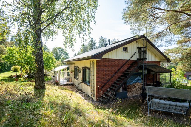 - Puurunkoinen sekä puu- ja tiiliverhoiltu omakotitalo.