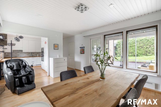This charming detached house in the quiet and desirable Pihlajarintie residential area of Espoo offers a great setting for family life. The house is located on its own plot, and is surrounded by a green courtyard, which offers plenty of space for children to play and garden. The two-story house is in good condition and its spacious rooms create a cozy and spacious atmosphere.