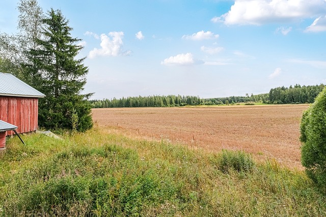 Peltomaisemissa 1983 valmistunut tiiliverhoiltu kahden makuuhuoneen talo.