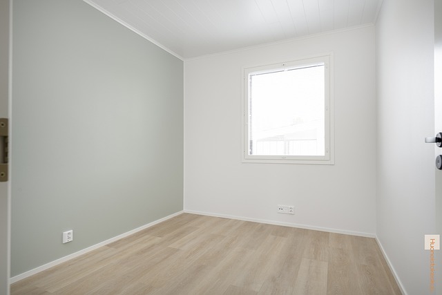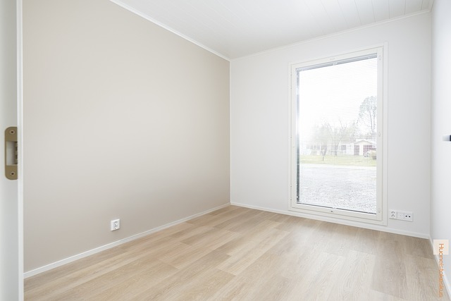 Päämakuuhuone sijaitsee olohuoneen vieressä erillään muista huoneista ja sieltä on suora kulku pesutiloihin, jossa myös talon toinen wc.