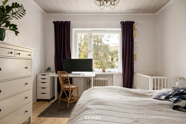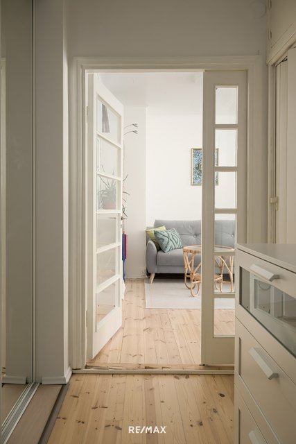 Tämä tyylikkäästi toteutettu koti vapautuu nyt pitkäaikaiselta omistajaltaan. Asunnossa on tehty kattava huoneistoremontti vuosina 2019-2021, jolloin uusittiin mm. keittiö kodinkoneineen, asuinpinnat ja huoneiston sähköjä. Tämän asunnon sydän on iso olohuone ja ruokailutila, jotka yhdistyvät avokeittiöön luoden avonaisen kokonaisuuden. Keittiössä on runsaasti kaappi- ja säilytystilaa, jonka lisäksi iso saareke tuo hyvin laskutilaa ruuanlaittoon. Tilavaan makuuhuoneeseen mahtuu hyvin esim. työpiste. Eteisen yhteydessä on kompakti vaatehuone, joka tuo kivasti säilytystilaa asukkaiden käyttöön. Asunnolle kuuluu lisäksi tilava häkkivarasto ja kellarikomero.